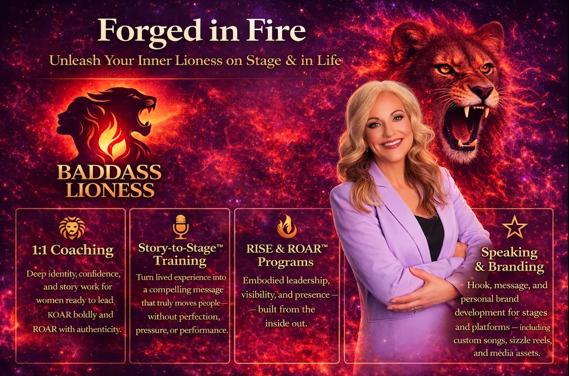 Baddass Lioness is more than a program — it’s a movement for bold, purpose-driven women in their second chapter of life who are ready to reclaim their roar, rewrite their story, and rise into legacy-level impact. We help you unleash your voice, elevate your brand, and step into the spotlight with confidence.